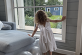 Гостиная-кухня с панорамными окнами в сад и вторым светом, 1 диван раскладной двуспальный, 4 изолированных спальни: 2 с двуспальными кроватями и ортопедическими матрасами Askona, 2 с раскладными двухместными диванами, 3 санузла (один с ванной, в двух раковина и унитаз), отдельно стоящая русская баня, зона барбекю, парковка, детская площадка, теплица, грядки с фруктами-овощами-зеленью в летний сезон.