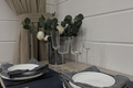 Чистый, просторный и очень эстетичный домик. Есть все необходимое для комфортного проживания: новые салфетка и губка, бокалы, посуда, посудомойка, вентилятор, пледы, вода для чайника. Не во всех домиках, так заботятся о гостях. Стол уже зарезервирован. Хорошая мангальная зона, с мангалом для двоих и компании (жаровня). На веранде шикарное кресло кокон. В спальне плотные шторы.