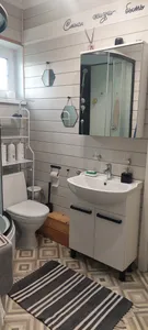 Очень уютный чистый и современный домик! Уединенное расположение , нет близости с соседями( что огромный плюс)! Вид с террасы потрясающий на дикий лес! В домике все есть для комфортного времяпровождения! ещё... скрыть