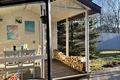 Летом на патио перед бассейном крытая терраса, настольный теннис, шезлонги, садовые качели, песочница, вдоль стен растет виноград, как на юге..