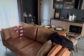 - Просторная кухня-гостиная с панорамными окнами и шикарным видом на лес, камином, в котором очень красиво горит огонь (вы сможете убедиться сами). В гостиной есть двуспальный диван, можно разместиться и засыпать под тепло и трескание камина.