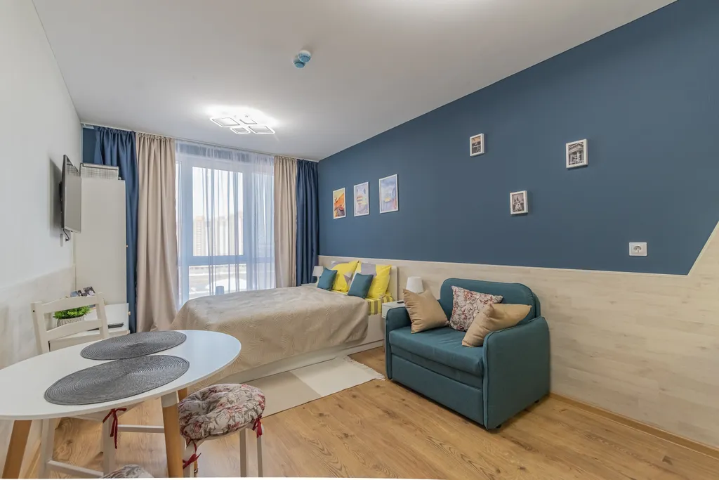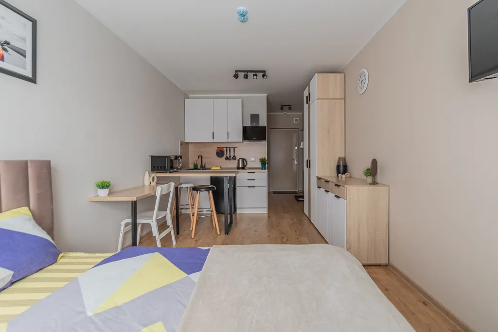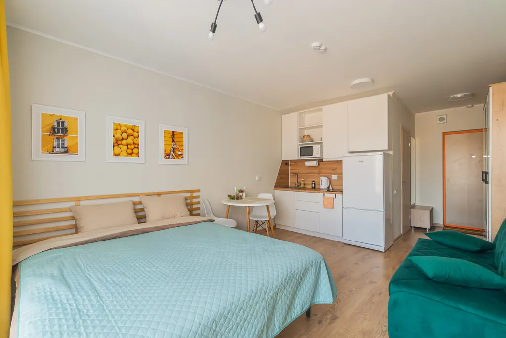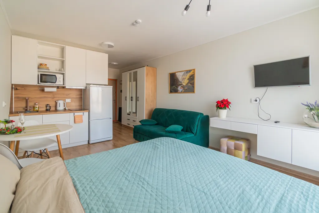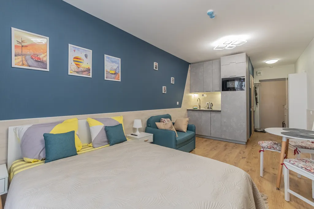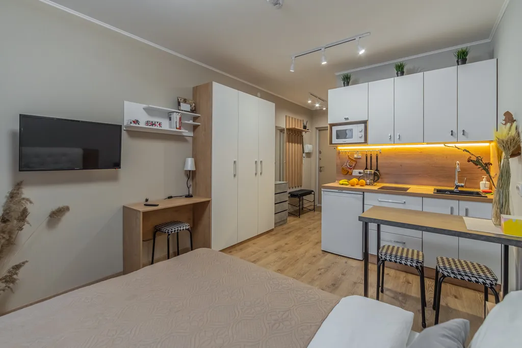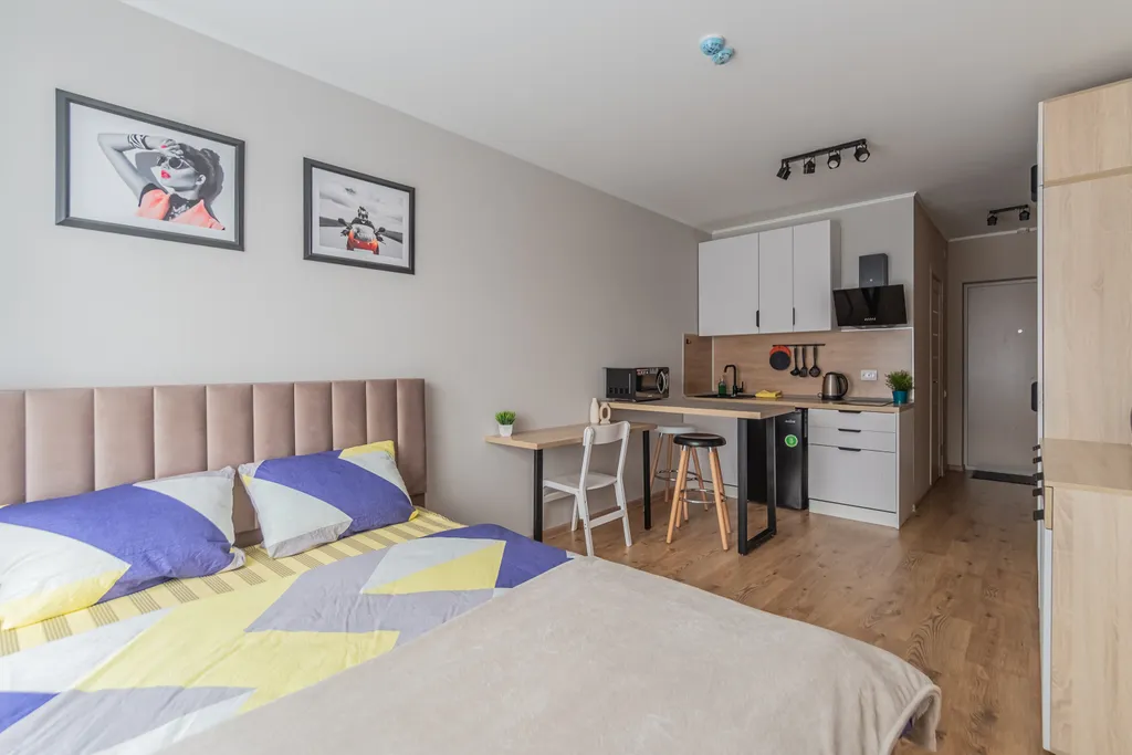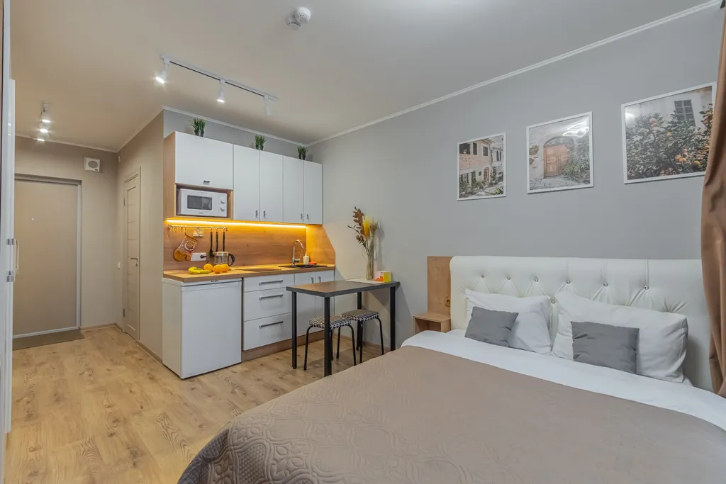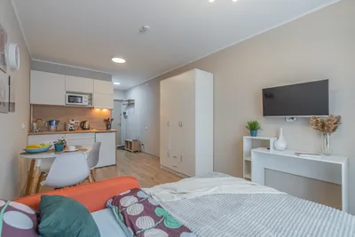 Уютные апартаменты со спальней совмещенной с кухонной и обеденной зоной