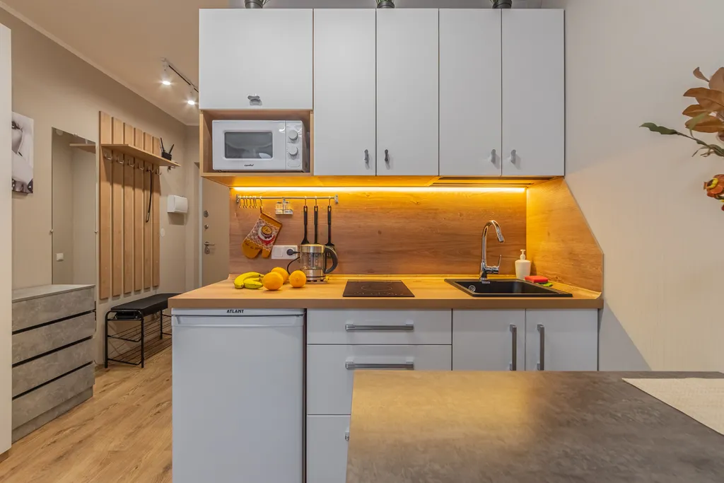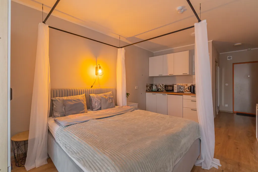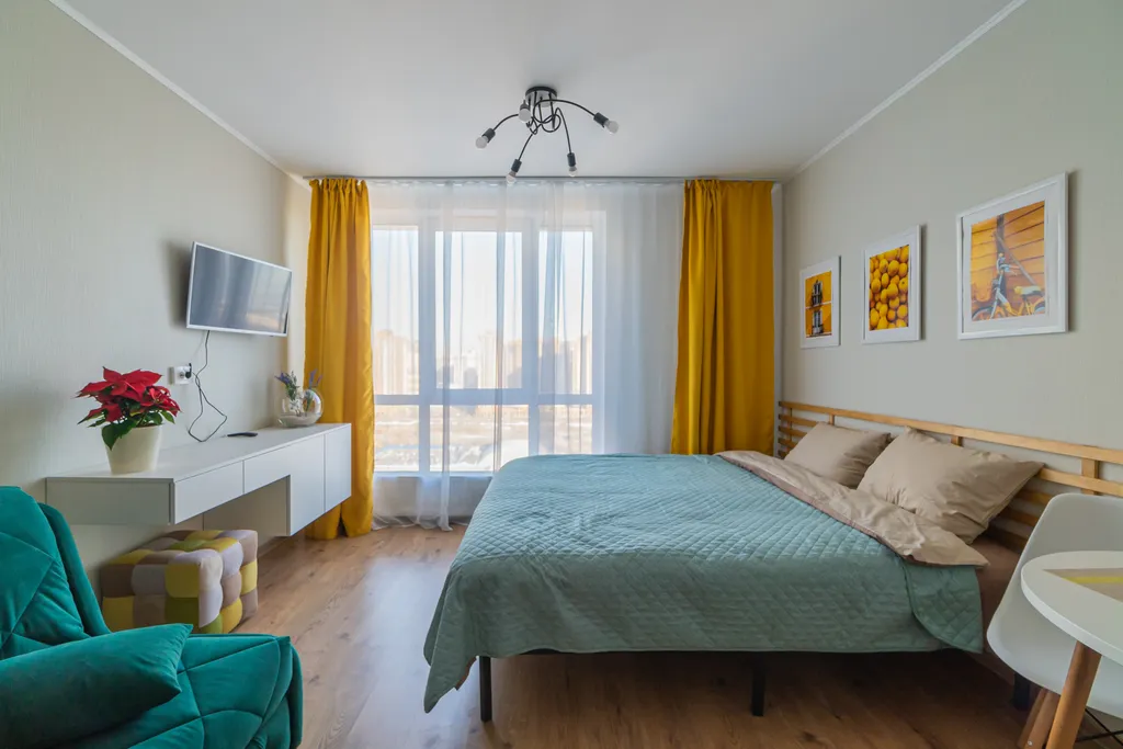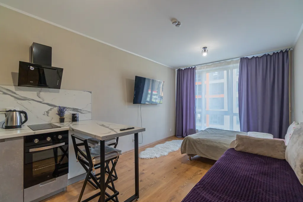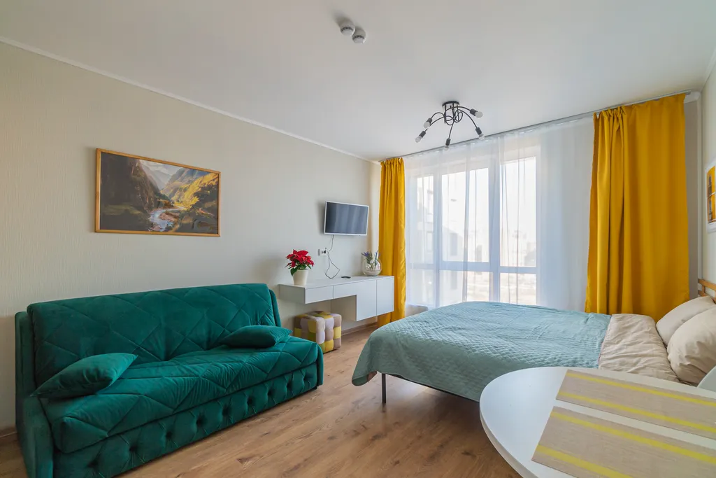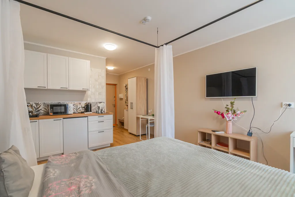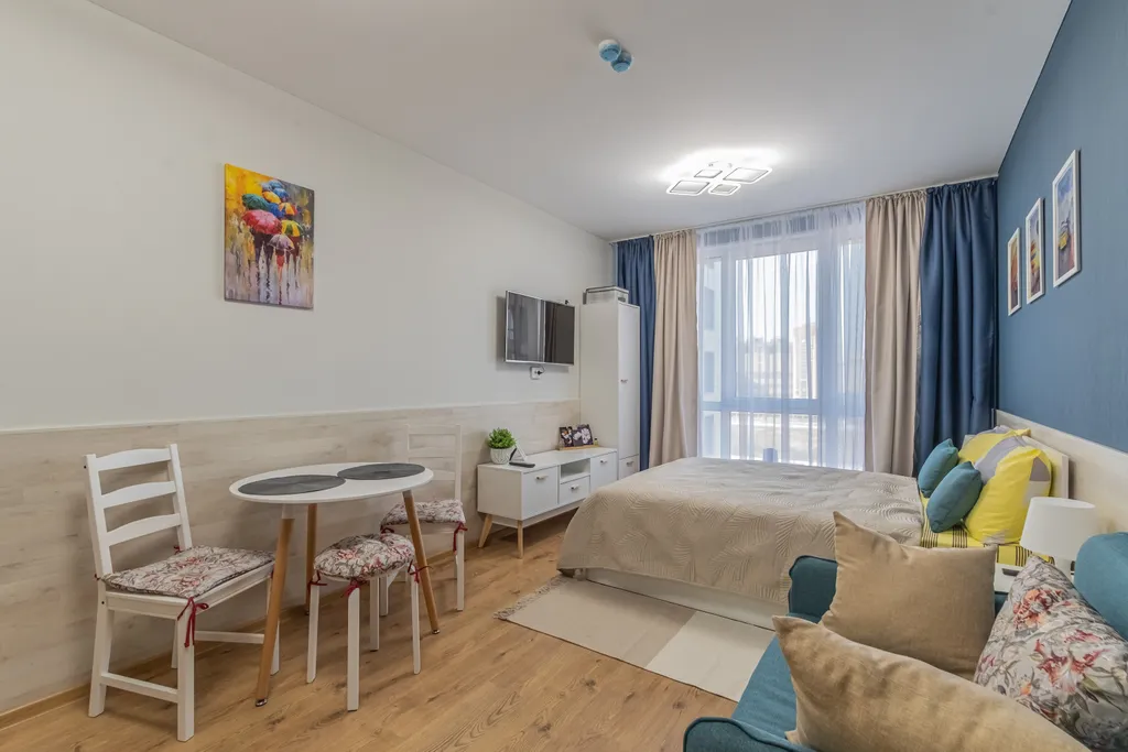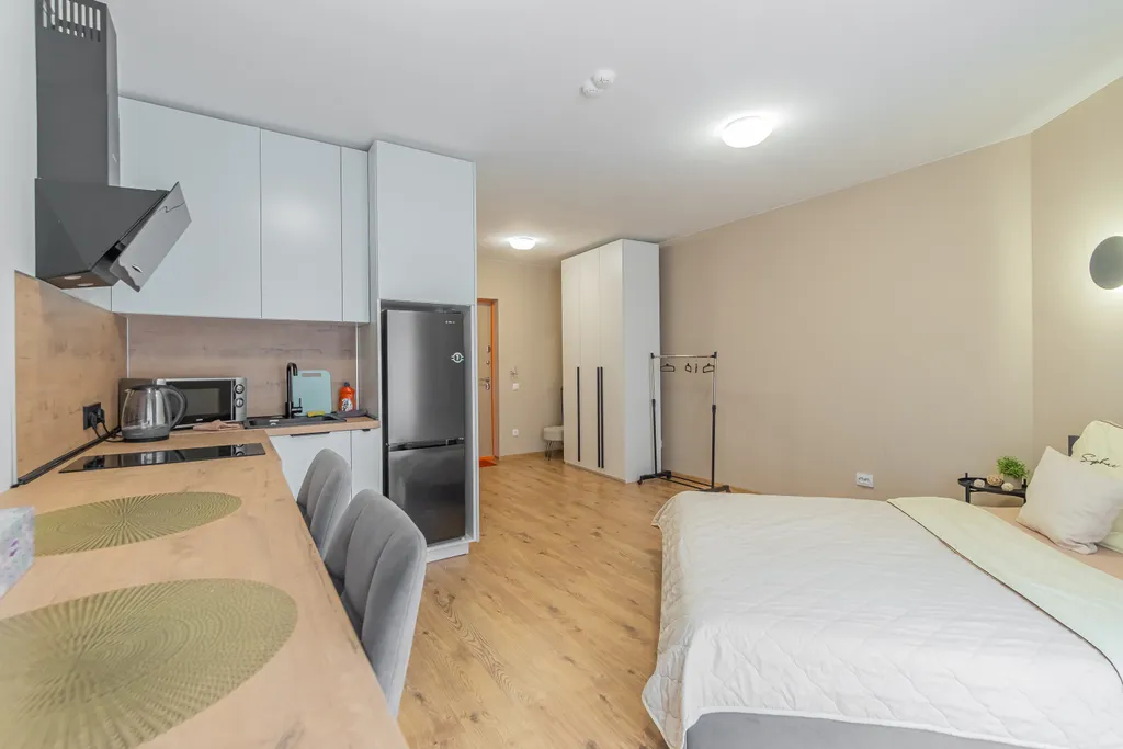 Уютные апартаменты со спальней совмещенной с кухонной и обеденной зоной