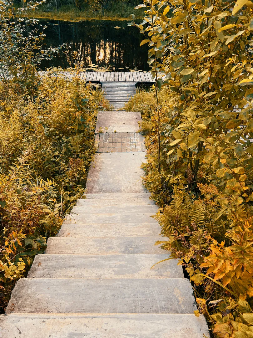Расположен на берегу реки, впадающей в ладожское озеро, в настоящем лесу.