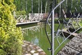 Участок обустроен прудиком с карпами Коя, дорожками и различным оборудованием, предназначенным для пассивного и активного отдыха гостей: скамеечками, гамаками, качелями, шезлонгами, площадкой для игры в городки, батутом, столом для настольного тенниса и детской площадкой. В зимнее время можно покататься с горок не выходя за территорию участка.