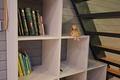 Двуспальное место на втором этаже и двуспальный диван на первом