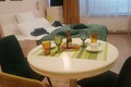 Чудесный новый апарт отель. Завтракали, обедали и ужинали в кафе на 1ом этаже. Домашняя кухня, цены замечательные, очень вкусно. Номер соответствует фото, персонал дружелюбный, компетентный, доброжелательный. Вернемся ещё и всем советуем! P. S. У нас был другой номер, потому что шел ремонт вентиляции, поэтому фото не того апартамента