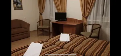 Чудесная локация, радушный приём – всё очень приятно)) Великолепная территория-парк, на которой находится комплекс, вековые ели, сосны, чистейший воздух. В корпусе милое кафе в советской тематике. Всё скромно, однако, более чем соответствует цене, и вернуться хочется!🤗 Благодарим за отдых!
